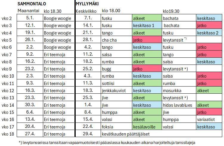 Seuramme järjestää kevät- ja syyskaudella tanssitunteja maanantaina klo 18:30 - 19:45 ja keskiviikkoisin klo 18 - 21 opettaen eri tanssilajeja: