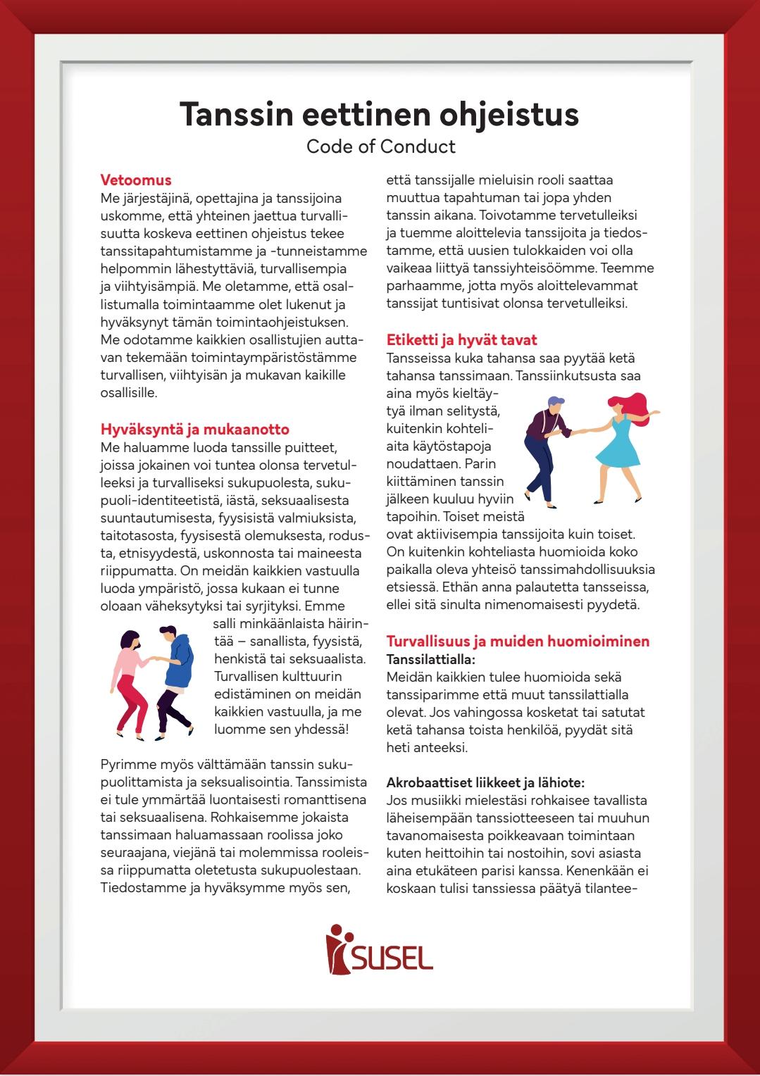 Tiedätkö mitä kuuluu tanssietikettiin ja mitä tanssilajeja Suomessa yleisesti tanssitaan? Alla kattavasti tietoa tanssietiketistä ja eri tanssilajeista, jotka on julkastu Tanssiseura Sekahaku ry sivuilla.