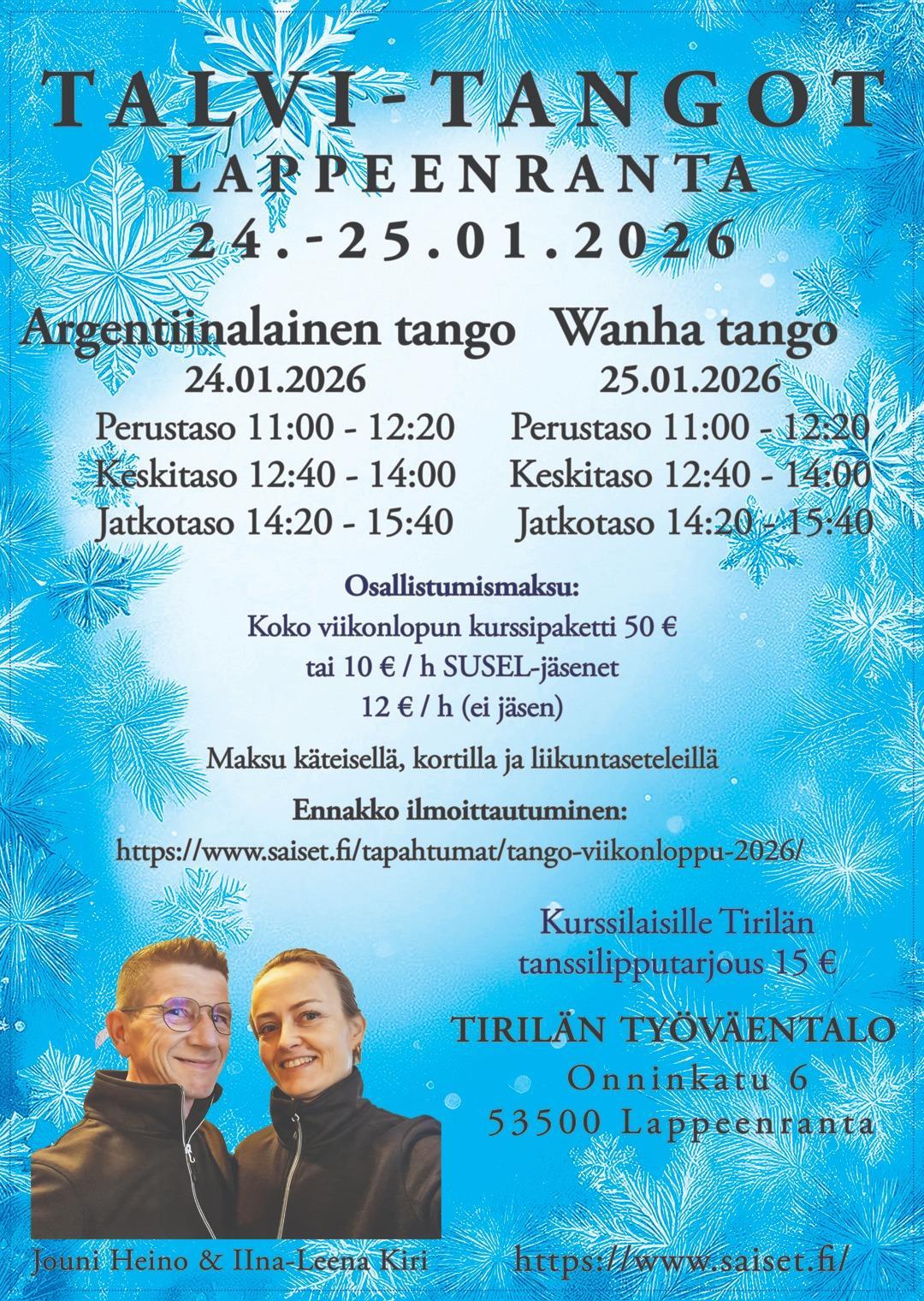 ARGENTIINALAISTA JA WANHAA-TANGOA LAPPEENRANNASSA 24.-25.1.2026 TIRILÄN TY-TALOLLA