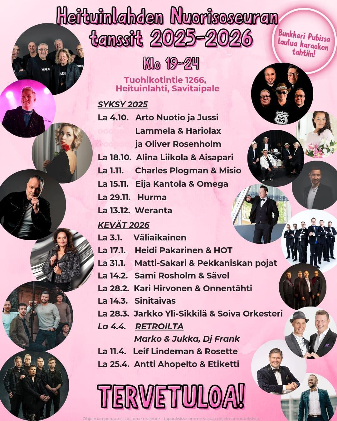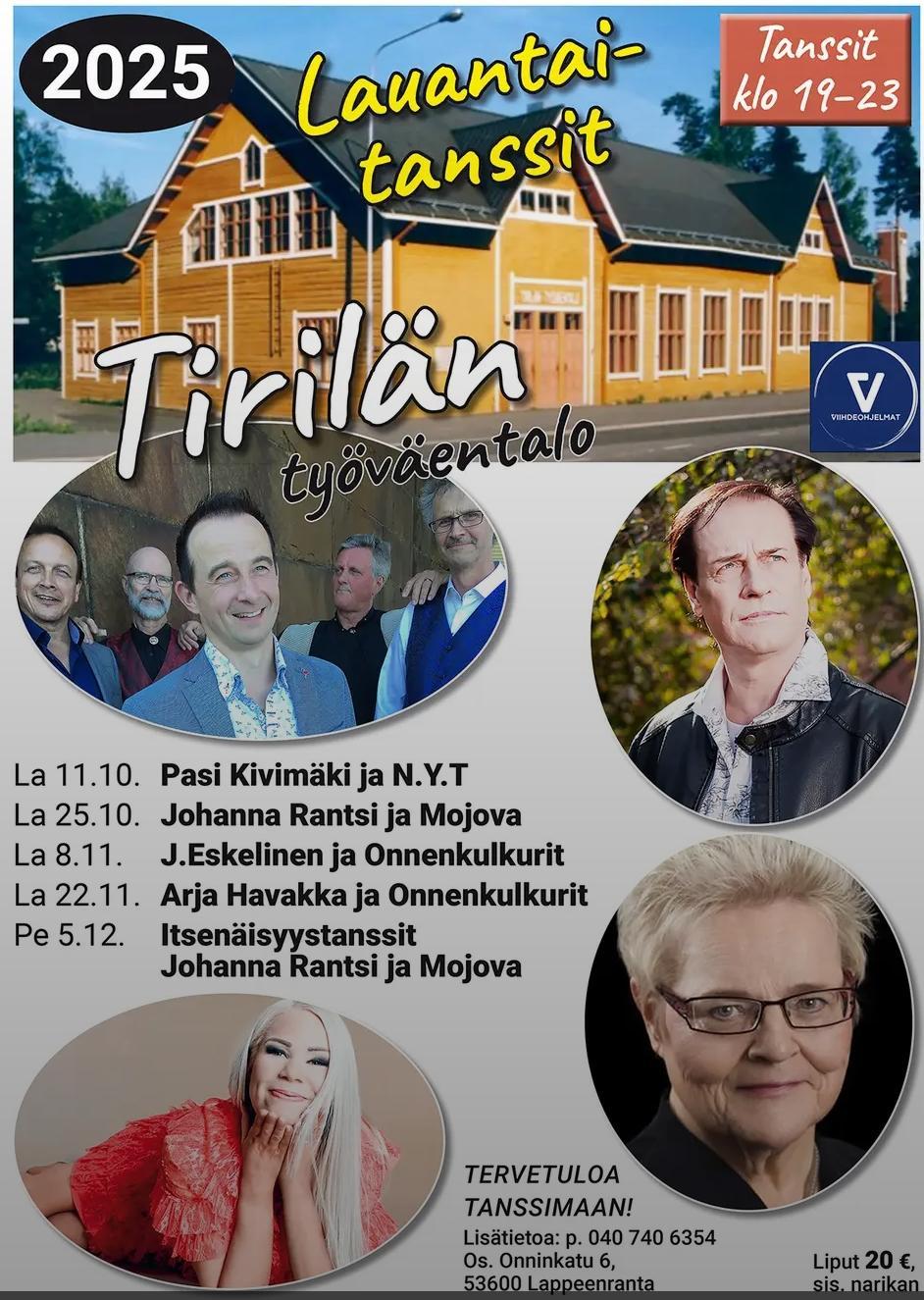 Saimaan Seurantanssijat kutsuu kaikki jäsenet Tirilän Työväentalolle Syyskauden avajaistansseihin lauantaina 11.10.2025 klo 19 alkaen. Tanssit tahdittaa Pasi Kivimäki yhtyeineen. Seura tarjoaa jäsenille tanssilipun hintaa 20€ (sis. kahvilipun ja narikan). SaiSet jäsenille oma lipunmyyntipiste avoinna klo 18:45 - 19:15. HUOM! Tirilän Tansseissa VAIN KÄTEISMAKSU! Tarjoiluiden varaamiseksi toivomme ennakkoilmoittautumista pe 10.10 mennessä. Tanssit järjestää Viihdeohjelmat ja Tirilän Työväenyhdistys.