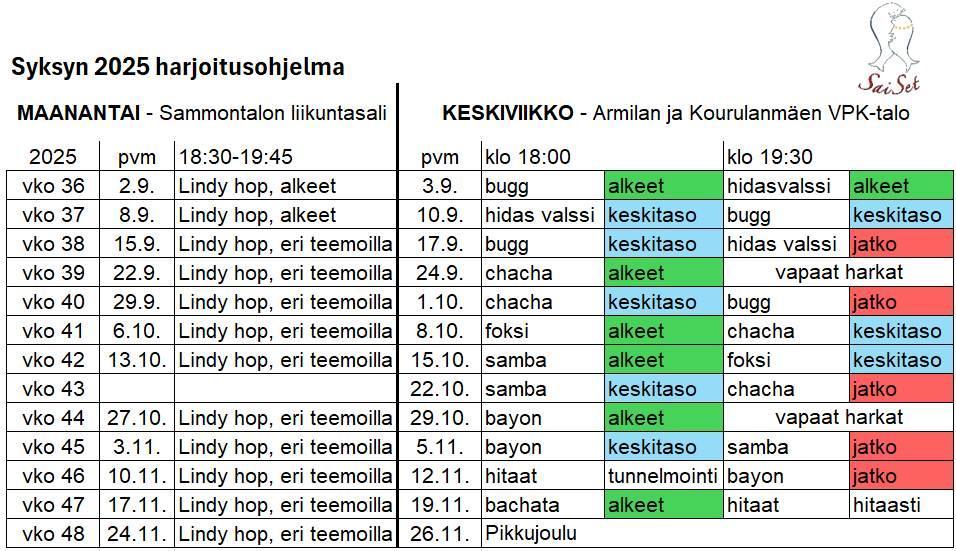 Ensi kesää kohti on jatkettava harjoituksia syyskuussa alkavilla tanssitunneilla sekä talvikauden tanssipaikoilla. SaiSet jäsenkortilla saamme pienen alennuksen mm. Tirilän- ja Vuoksenniskantyöväentalon sekä Heituinlahden Nuorisoseurantalon tansseista.